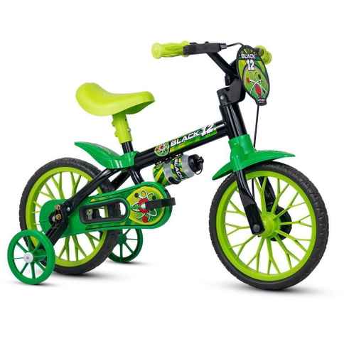 BICICLETA INFANTIL ARO 12 COM RODINHA E GARRAFINHA | NATHOR BLACK